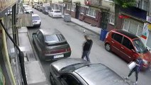 Çalmak istedikleri otomobili çalıştıramayınca, iterek götürdüler; o anlar kamerada