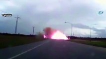 Seyir halindeki araç bomba gibi patladı