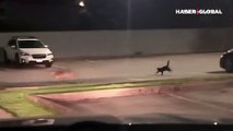 Çakalın peşinden koşan kedi kamerada