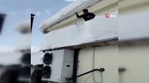 Önlem almadan çatıdaki karları temizledi, o anlar yürekleri ağza getirdi