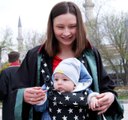 Avukat anne ve mübaşir baba törene 7 aylık bebeğiyle katıldı