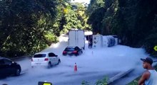 Brezilya'da tıbbi oksijen taşıyan tır devrildi