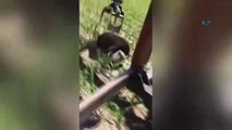 Başı tenekye sıkışan ayıyı böyle kurtardılar
