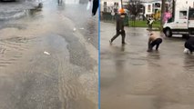 Bodrum’da sağanak sonrası gölet taştı: Balıklar yola saçıldı