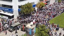 Aliyev bayrağı öpüp göndere çekti