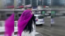 Esenler'de1.70 boyundaki kardan gelin vatandaşların ilgi odağı oldu