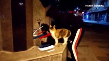 Çeşme başında bekleyen kediye elleriyle su içirdi