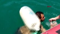 Denizde mahsur kalan yavru ayıyı balıkçılar kurtardı: Korkma sana zarar vermeyeceğiz