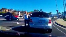 Öfkeli sürücü el frenini unutup araçtan inince...