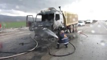Hareket halindeki kamyon böyle yandı