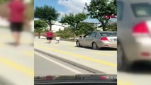 Kaldırımdan giden otomobilleri böyle protesto ettiler