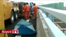 Kamyon savrula savrula böyle devrildi