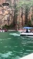 Dehşetin görüntüsü! Gezi teknelerinin üzerine kaya düştü