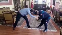 Vali, makamında güreş tuttu