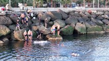 Çılgın Karadenizlilerden buz gibi suda deniz keyfi