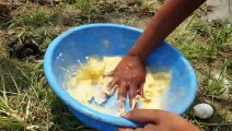 Fish Trap Boy Catching Catfish Using Green Coconut Traditional Fishing