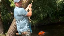 Man swings over water during camping and surprises everyone by not falling