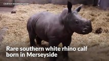 A rare greater one-horned rhino calf was born at Chester Zoo.Fewer than 3,000 one-horned rhinos are left in the wild as the species is under immense pressure from poaching and habitat loss.Source: PA, Chester zoo