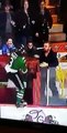 Le joueur des Marquis de Jonquière dans la Ligue nord-américaine de hockey (LNAH) Jonathan Diaby s'attaque à un partisan des Pétroliers du Nord à Laval