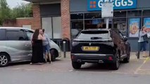 Heated argument between two women in a car park outside Greggs caught on camera