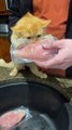 Occurred on October 2022 / Pitt Meadows, British Columbia, Canada: "Juice is a 10-month-old kitten with a big appetite. He tried to steal chicken as we were cooking."