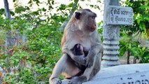 Best Caring.....Mama Monkey Following Her Son Mora Who Running So Fast Mom Keeps Perfect Protective