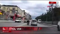 Kavga anı yoldan geçen bir sürücünün cep telefonu kamerası ile kaydedildi.