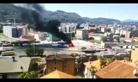 Tir a fuoco sulla A26 nei pressi di Genova, bosco in fiamme