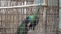 Surat Wiyoto sibuk menyebar ulat untuk makan merak hijau (Pavo muticus) yang ditangkarnya. Satwa berbulu indah yang dipeliharanya berjumlah 31 ekor. Seluruh merak itu merupakan hasil penangkaran sejak 1998.