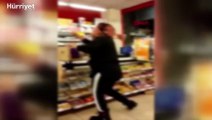 Vedat BAYRAKTAR İSTANBUL, (DHA)- GÜNGÖREN'de zincir markette hırsızlık yaptığı iddia edilen iki kadın, çalışanlar tarafından fark edildi. Kadınlardan biri kaçarken, diğer kadın içeride tutuldu. Marketin içindeki kadın Çalıyorum. Benim ekmeğim kusura bakma, benim raporum var, ne yapabilirler bana. Kendimi de öldürürüm, buradakileri de öldürürüm diye bağırdı. Yaşananlar, çevredekilerin cep telefonu kamerasına yansıdı.