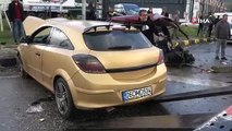 Korkunç kaza! Otomobil ikiye bölündü, sürücü araçtan fırladı