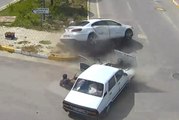 İki araç çarpıştı, kemeri takılı olmayan sürücü böyle dışarı fırladı