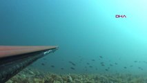 1 METRELİK LİÇA BALIĞI SÜRÜSÜYLE KARŞILAŞTIĞI ANLARI SU ALTI KAMERASIYLA KAYDETTİ
