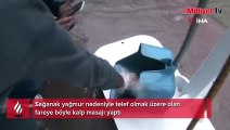 İzmir'de etkili olan sağanak yağışta su birikintilerinin içinde kalan ve telef olmak üzere olan bir fareye kalp masajı yapıldı.