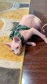 Hairless Cat Hates His Harness
