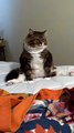 : "My brother went back home early to visit our family before Christmas. We live in Las Vegas, and I could not yet leave due to my work so I was in charge of his cats. Butters usually doesn't give me any attention but with his person away he started spending more time with me. I took myself on a little brunch date that day to get coffee and when I came back he wanted to spend some time with me, so Butters and I did a little photo shoot. I thought it would be funny to kind of mock the 'let's take a silly one' that everyone (including myself) always does at the end of group photos. I had no idea he would actually play along. We just happened to make similar faces at the same time."