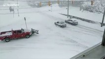 Man provides amusing narration as vehicles get stuck in blizzard