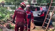 Di Kecamatan Manggis, rumah warga rusak akiba tertimpa pohon. Batang pohon ini dievakuasi petugas BPBD Karangasem.