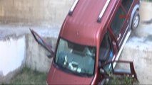Servis aracıyla çarpışan otomobil, evin bahçesine uçtu: 2 yaralı