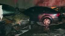 Bursa'da 7 katlı otoparkta çıkan yangında 3 araç kül oldu