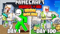 I Survived 100 DAYS as an IRON GOLEM in HARDCORE Minecraft!