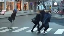 This family was out on a walk on a particularly windy day in Northern Norway and ended up struggling against the winds. The heavy winds made it difficult to even stand upright and pushed them backwards as they tried to walk ahead. The snow-covered roads made matters even worse.