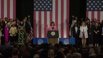 "Know this: President Biden and I agree, and we will never back down,” Harris said to applause in Tallahassee on Sunday, the 50th anniversary of the Roe v. Wade decision that once guaranteed the federal right to abortion. “We will not back down. We know this fight will not be won until we secure this right for every American.”