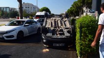 Çan'da kırmızı ışıkta duramayan araç öndeki araçlara çarparak alev aldı