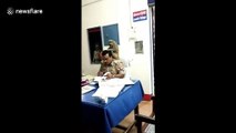 Police officer gets impromptu hair grooming session from lost monkey in India