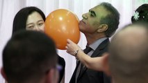 When it's time to use my party popper, all I have to do is pull the string attached to the balloon and the air inside the balloon will shoot out the top, causing the confetti, streamers, and toys to fly out of the bottle and into the air.