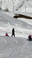 Hank, the dog, loved sliding down on the snow in the front yard after the snow storm. He got atop a sled and rode it down the slope.
