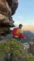 Occurred on July 20, 2022 / Cape Town, Table Mountain, South Africa: "My friend Caro Jordaan jumped across the gap but she barely makes it! Lucky"