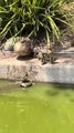 These three days old ducklings found a way to escape their cage. They climbed the fence and jumped to the other side.