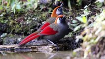 Beautiful bird bathing in stream